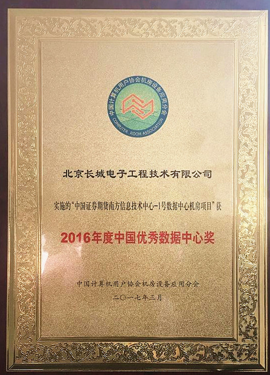 北京長(zhǎng)城電子工程技術(shù)有限公司承建的“中國(guó)證券期貨南方信息技術(shù)中心-1號(hào)數(shù)據(jù)中心機(jī)房”作為本次活動(dòng)的應(yīng)用推廣樣板,并榮獲“2016年度中國(guó)優(yōu)秀數(shù)據(jù)中心”。